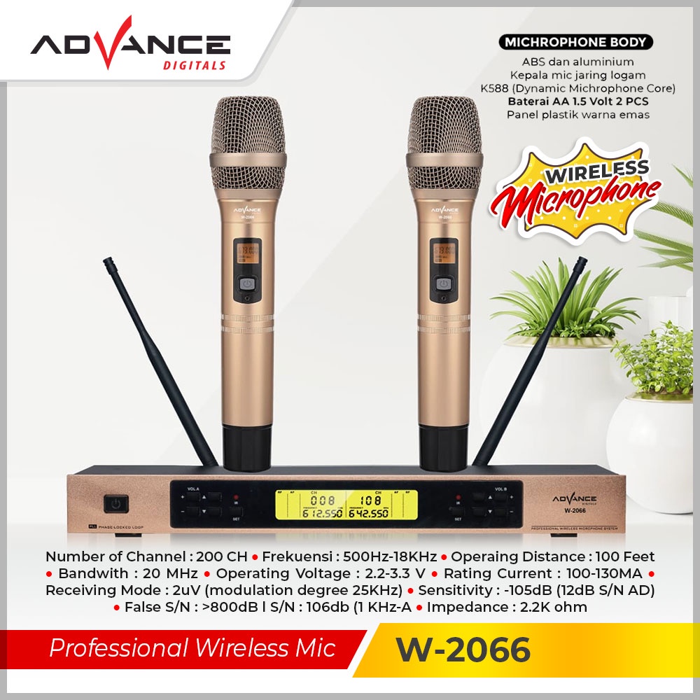 Wireless Microphone Profesional Microphone Wireless Double UHF Microphone System Mic wireless Advance W-2066