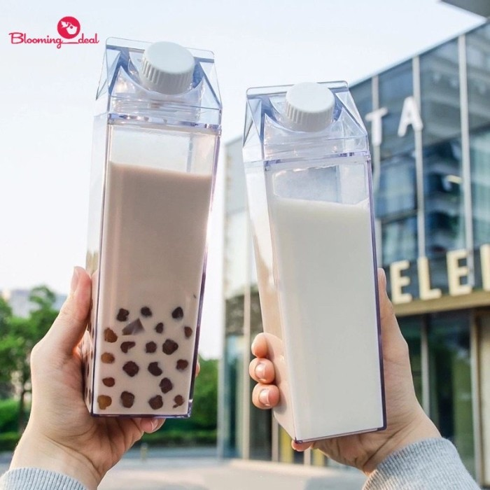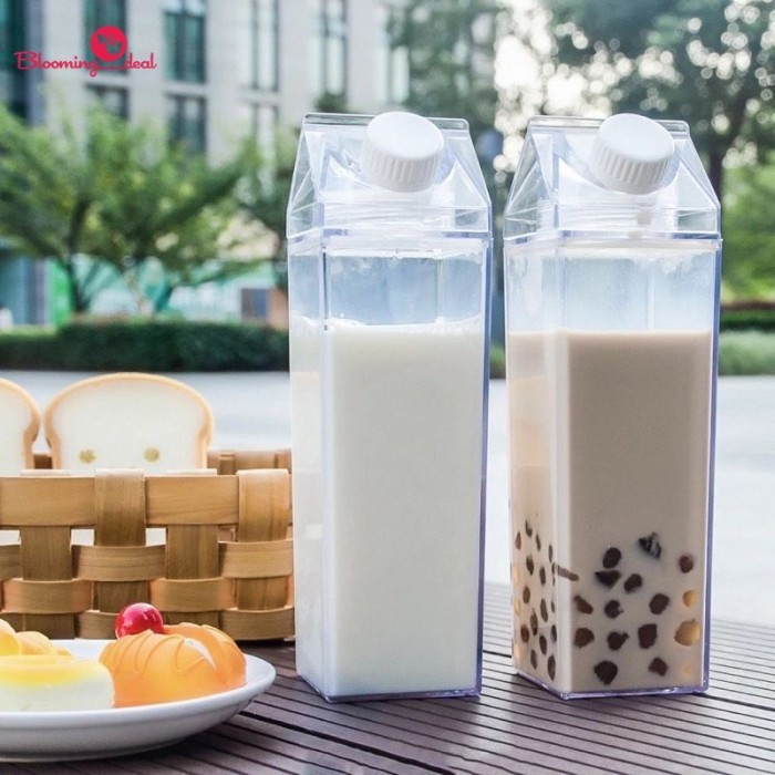 Botol minum bentuk kotak susu dengan bahan plastik tebal dan food grade, aman untuk kesehatan keluarga. Botol refill susu dengan badan bening transparan akan mempercantik ruang makan dan kulkas Anda. Dapat digunakan untuk menyimpan (refill) susu, juice, es buah, hingga air mineral. Dilengkapi seal k