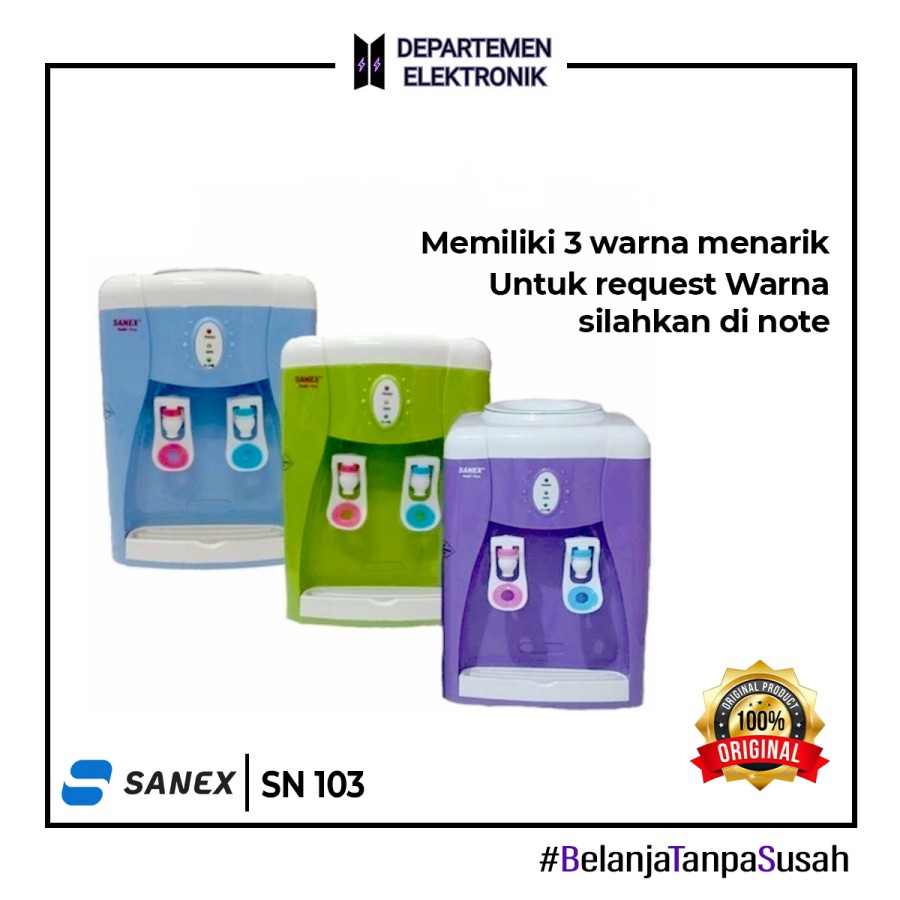 Sanex Galon Atas Dispenser 103 Sanex Dispenser Galon Atas 103 merupakan dispenser tipe top loading atau isian atas ini hadir dengan desain yang ergonomis. Memiliki tabung air panas anti karat yang terbuat dari bahan stainless steel. Anda dapat menikmati air mineral segar lebih praktis. Dengan daya 4