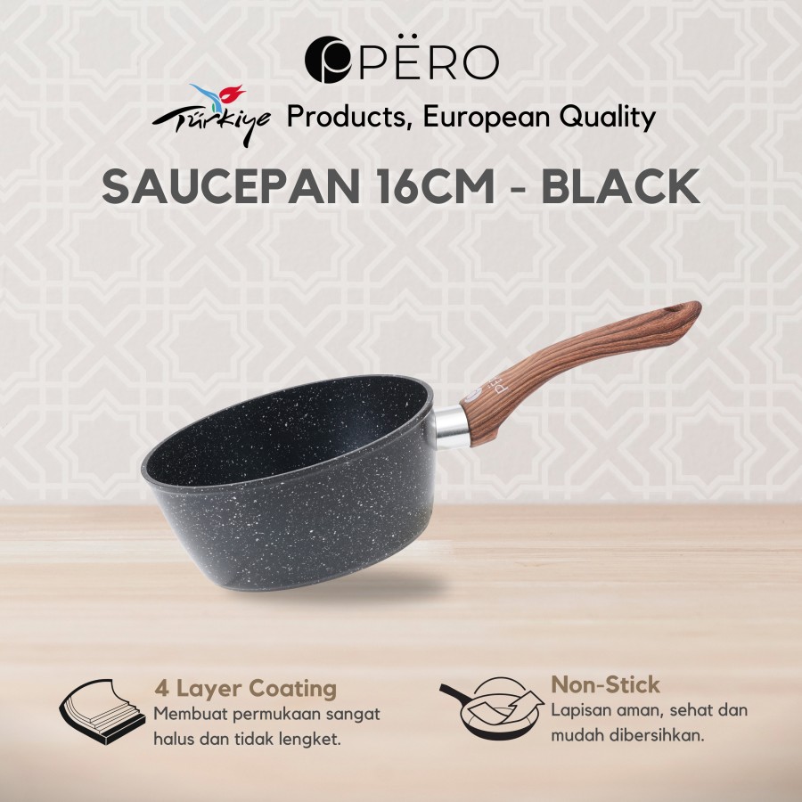Pero Ruby Sauce Pan 16cm Biogranite with Wooden Handle