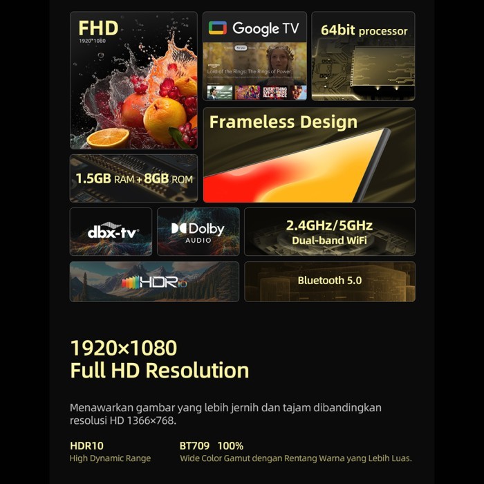 Seri Chiq G7P Pro dilengkapi dengan Google tv bersertifikat resmi, menyediakan 5000+ aplikasi yang tersedia untuk digunakan, dan menghadirkan pengalaman hidup yang lebih beragam d