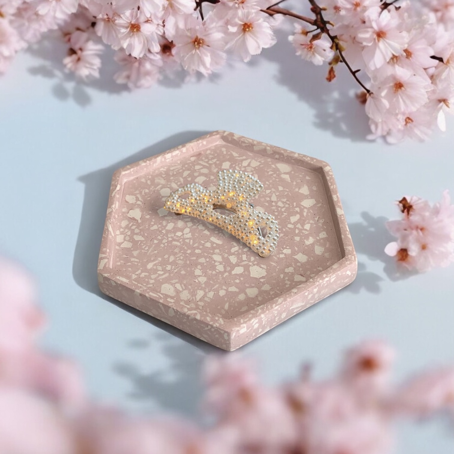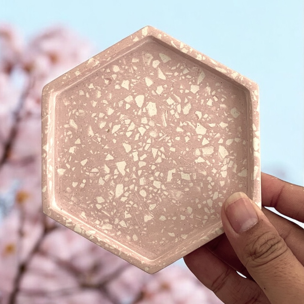 Tatakan Gelas Aesthetic Hexa Tray Terrazzo Pink / Alas Botol Sabun Aesthetic Eco-Resin
